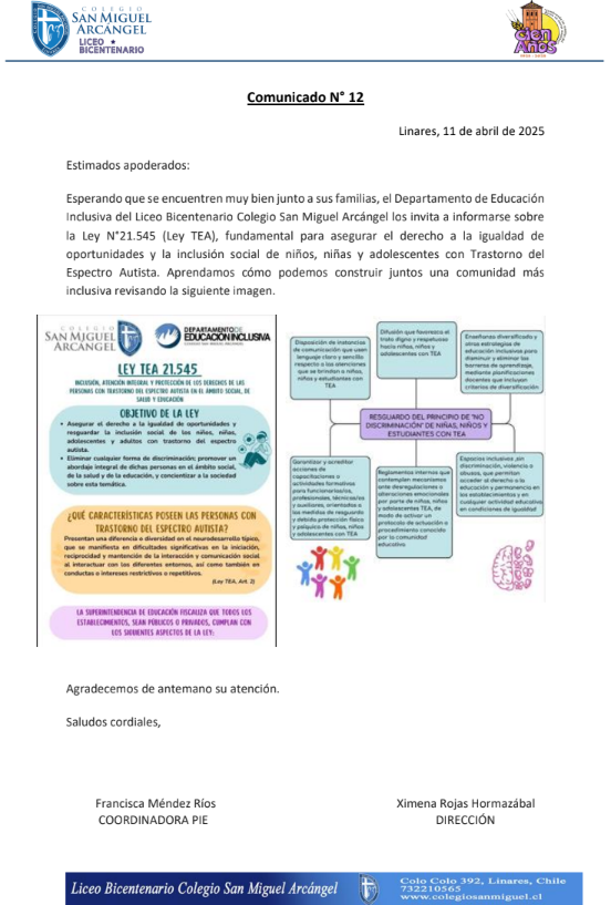Educación Inclusiva del Liceo Bicentenario Colegio San Miguel Arcángel los invita a