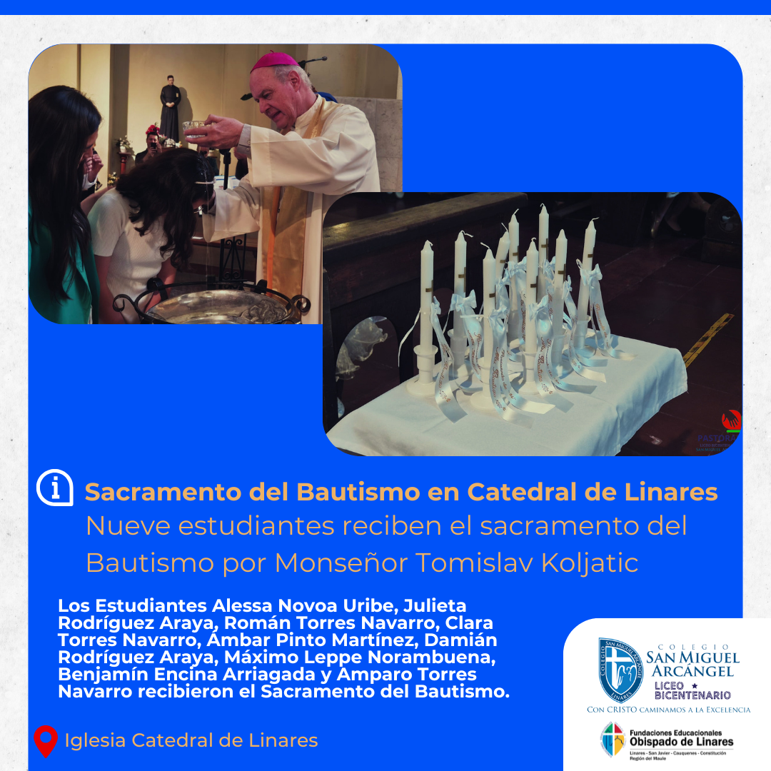 Con profunda alegría compartimos que este fin de semana, en la Catedral de Linares, nuestro Obispo Monseñor Tomislav Koljatic celebró el Sacramento del Bautismo de estudiantes de nuestra comunidad educativa.