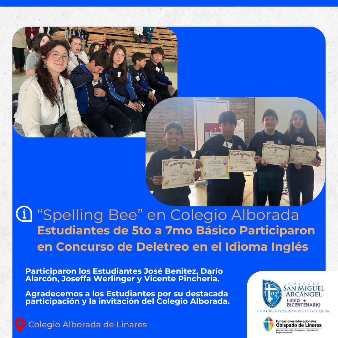Con orgullo destacamos la participación de nuestros estudiantes en el concurso de deletreo «Spelling Bee» en el colegio Alborada, instancia que promueve el aprendizaje del idioma inglés.