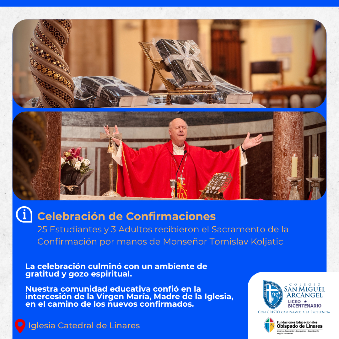 La Catedral de Linares fue nuevamente signo de fe viva y esperanza este viernes 24 de octubre de 2025, al recibir a 25 estudiantes y 3 adultos que recibieron el Sacramento de la Confirmación, en una celebración presidida por Monseñor Tomislav Koljatic.