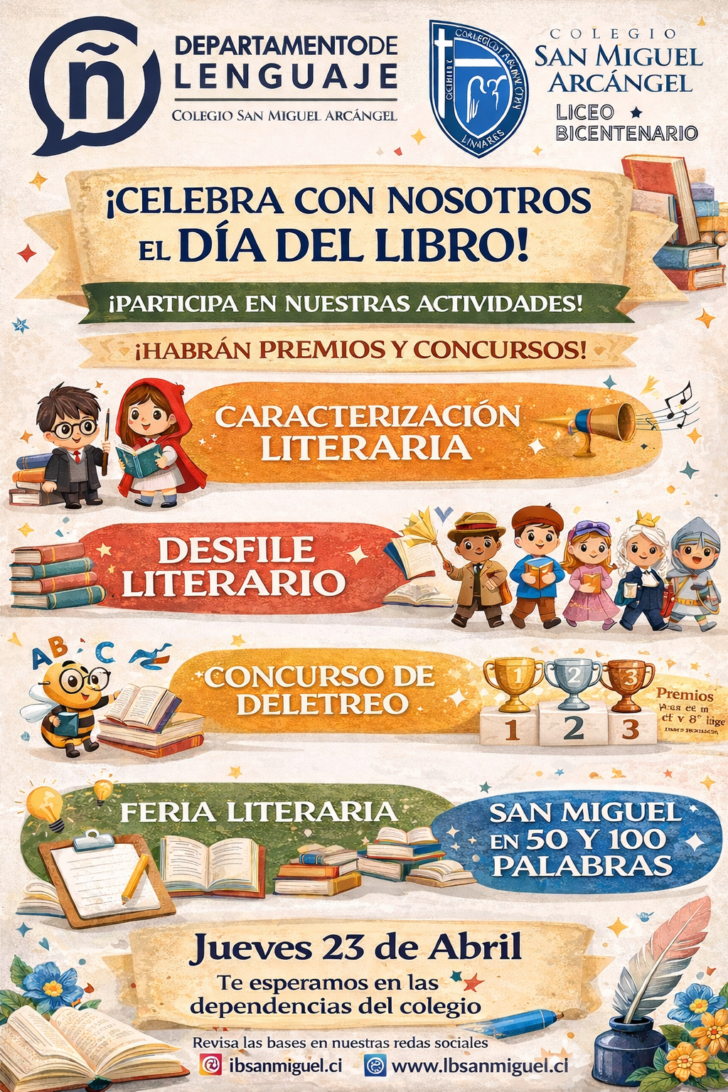 El Departamento de Lenguaje del Colegio San Miguel Arcángel invita a toda nuestra comunidad educativa a ser parte de una jornada llena de creatividad, lectura y expresión.